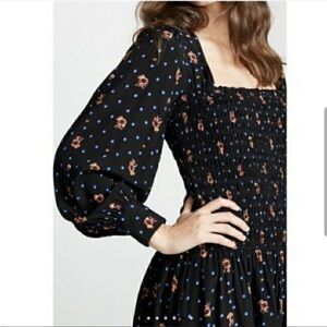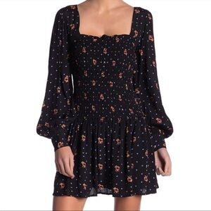 Free People Two Faces Mini Dress Mixed Print Puff Sleeve Square Neck Sz XS
