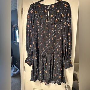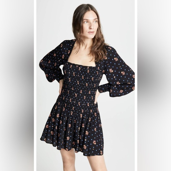 Free People Two Faces Print Smocked Mini Dress Size Medium