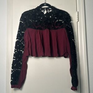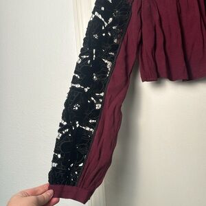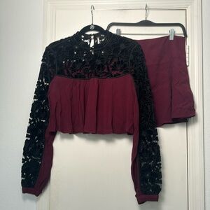Free People Two Hearts Burgundy Velvet Lace Embroidered Festive Skirt Set SZ 6