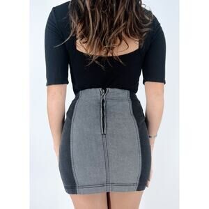 Free People Two Tone Slate Gray and Black Denim Mini Skirt Size 0