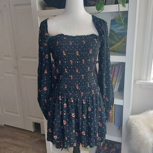 Free People Two Faces Print Mini Dress Smocked Bodice Size Small