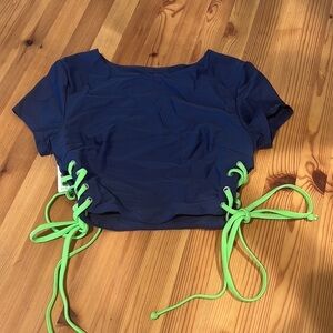 Free People TwoSix Shona cap Sleeve Bikini top Navy Blue XSmall JB