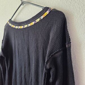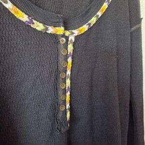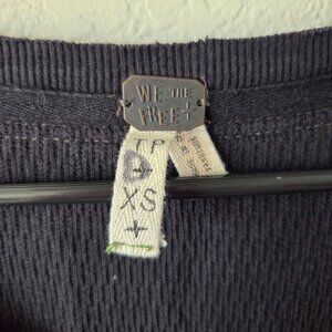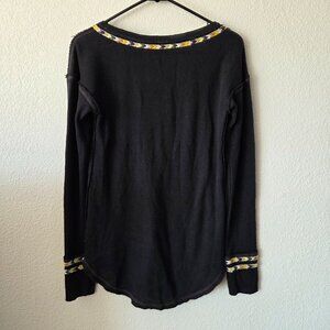 Free People US Sz XS We The Free Rainbow Thermal Henley Top Black Thermal Henley