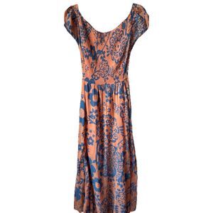 Free People Ultraviolet Dress Pale Pink Combo L 10 Women Smocked Maxi NEW