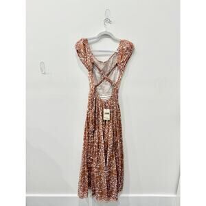 Free People Ultraviolet Floral Puff Sleeve Smocked Maxi Sundress Orange Women XS
