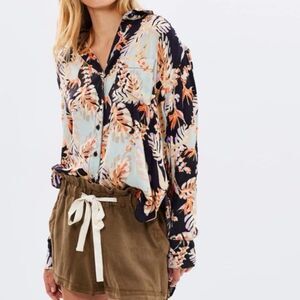 Free People Under The Palms Button Down Silky Soft Tropical Blouse Top XS