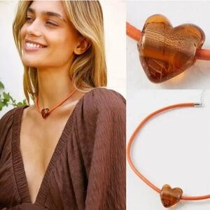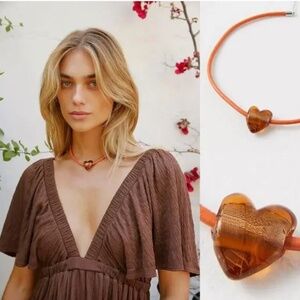 Free People Under the Sea Collar Orange NWT Choker Glass Heart Pendant