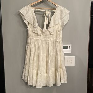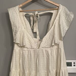 Free People Undone Mini Dress Women's Ecru Wash XL Off Deep V Tiered Boho Beachy