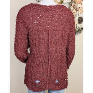Free People Up The Ladder Sweater Medium Maroon Distressed Grunge Streetwear