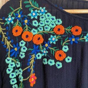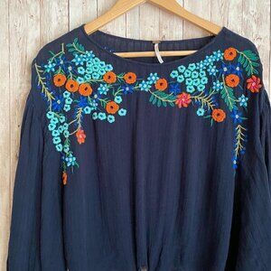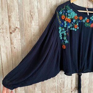 Free People Up and Away Relaxed Fit Tie Front Dolman Sleeve Embroidered Top