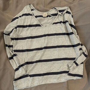 Free People Upstate Striped Long Sleeve Dolman Tee Women's Grey Black Medium