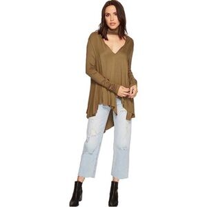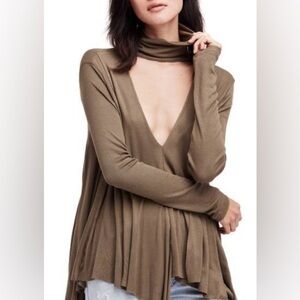 Free People Uptown turtleneck V Tunic TOP Army Medium NEW With TAGS