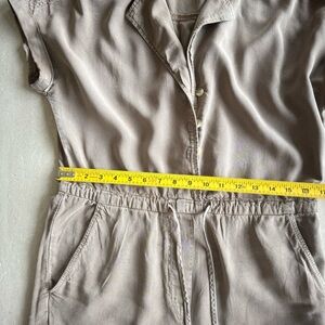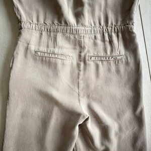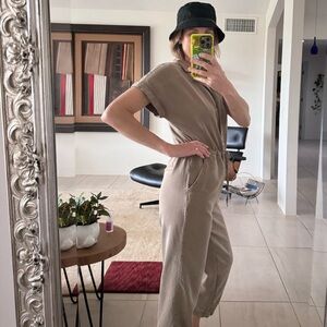 Super cute, soft, comfy, and practical! Jumpsuit from free people. Size XS. Soft lyocell material. Color tan. Pit to pit about 20”. Cropped style. Pre-owned, in good condition!