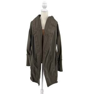 Free People Utility Jacket WMNS Green XS Hooded Open Front Belted Pockets Winter