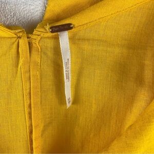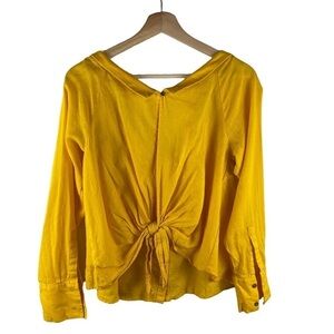 Free People V Neck Linen Button Front Tie Back Top Shirt Size XS