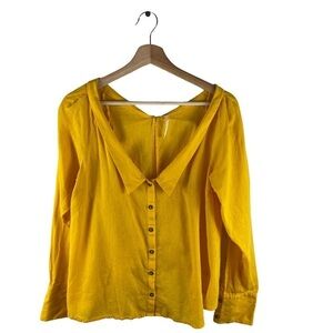 Free People V Neck Button Front Tie Back Top Shirt Size XS