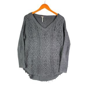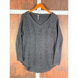 Free People V Neck Oversized Pullover Sweater Black Dark Gray Womens XS Cotton