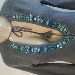 Free People V-Neck Floral Embroidered Wool Blend Sweater Dress/Tunic Size M