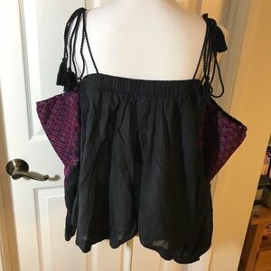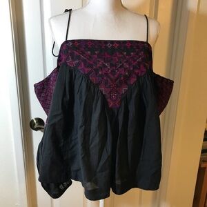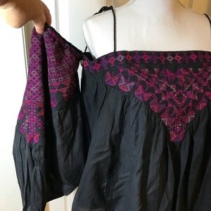 Fits true to size. - Square neck - Long sleeves with elasticized cuffs - Tie straps - Embroidery accents