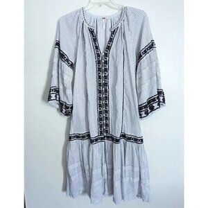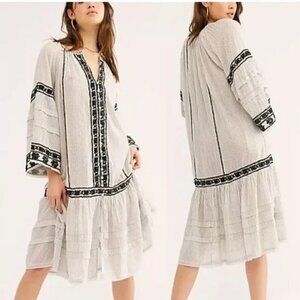Free People Vagabond Striped Maxi Tunic Top Dress Embroidered Oversized Size S