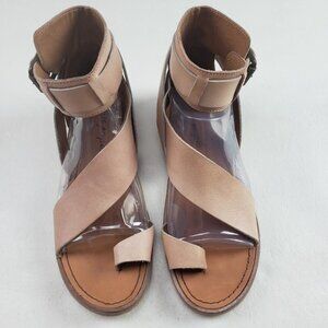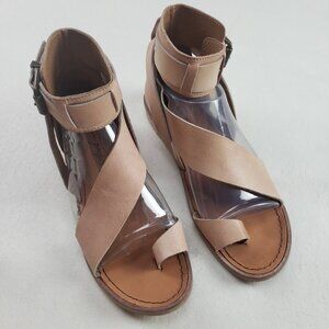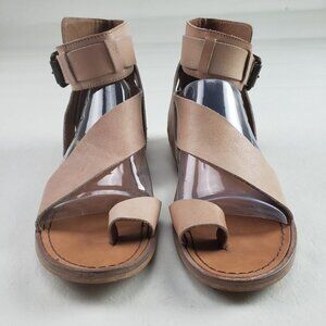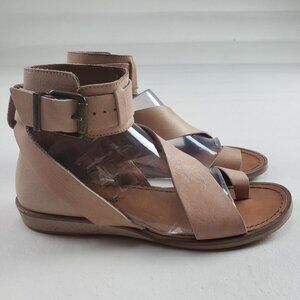 Free People Vale Boot Sandal Women 7.5 37.5 Beige Leather Ankle Strap Boho Spain
