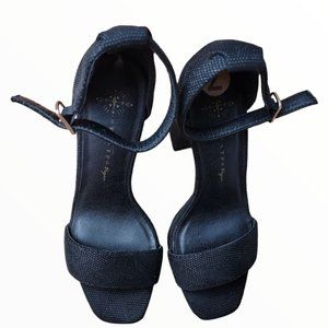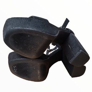 Free People Vegan Sandal Heel Platform Fabric Stud Ankle Strap Black Size 7