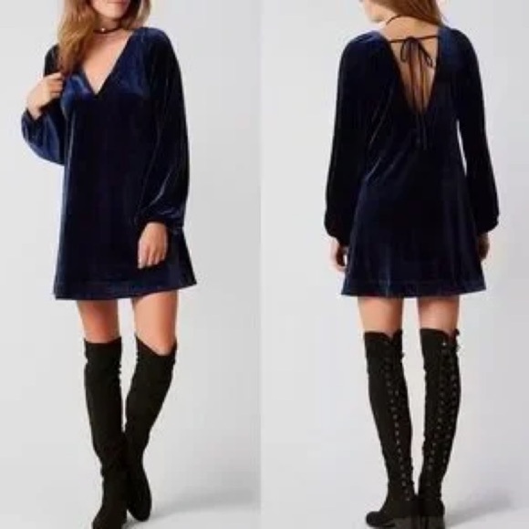 Free People Velvet Backless Dress in Deep Blue 0133