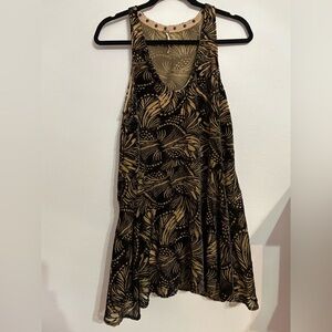 Free People Velvet Burnout Mini sleeveless Dress XS Tan/Brown Flowy
