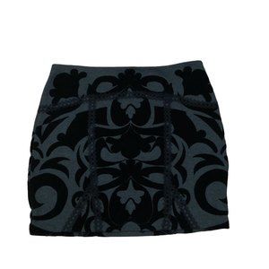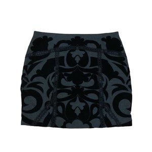 Free People Velvet Damask Stretch Mini Skirt S High Waist Lace Details Black