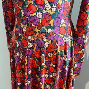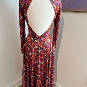 Gorgeous Velvet Floral Dress from Free People, Sz XS. Open back with 2 button closure at neck, Basque waist bodice, A-line skirt.
