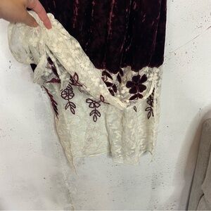 Brand: Free People Size: 8 Condition: Great Preloved Material: Cotton/Nylon Color: Maroon/Cream/Off-White Fit: Free People Lace Maxi Dress, Velvet Art Deco Detail, Vintage Style, Floral Embroidered Lace Detail, Halloween Costume Flaws: None
