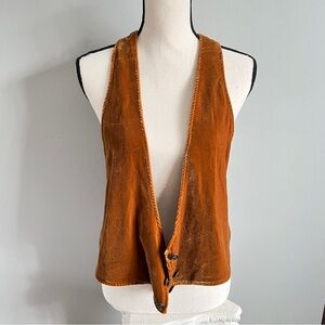 Free People Velvet Like Vest in Rich Brown with Decorative Buttons Size Small