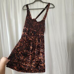 Free People Velvet Mini Dress Virgo Moon Brown Leopard Animal Print S Babydoll