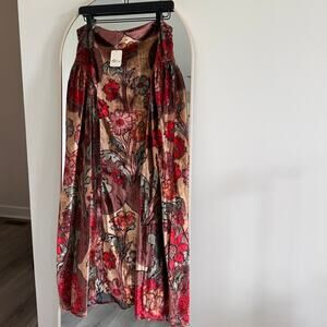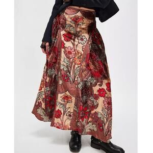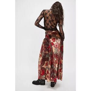 **Features:** Invisible zip closure, godet seaming at the sides for added shape, vintage-inspired floral print, velvet burnout fabrication.