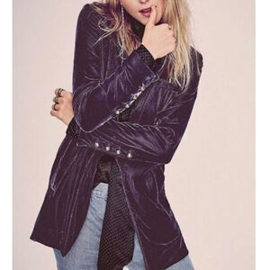 Free People Velvet Velour Dark Purple Yesterdays Muse Blazer Jacket