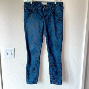 Free People Velvety Flower Black Print Blue Skinny Jeans Size 27