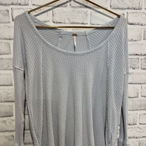 Free People Ventura Thermal Tee Women's Size S Waffle Knit Long Sleeve Blue