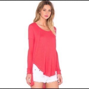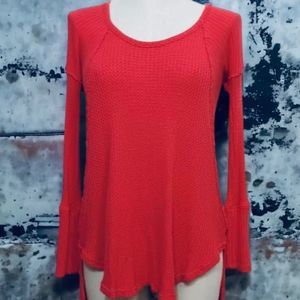 Free People Venture Hi Lo Thermal Waffle Print Tunic Coral XS Excellent Condition
