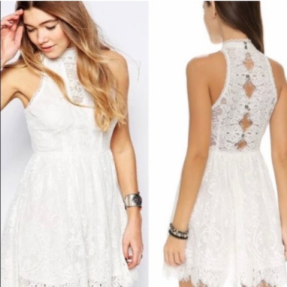 Free People Verushka White Lace Mini Dress. Size 6. High-neck. Racerback