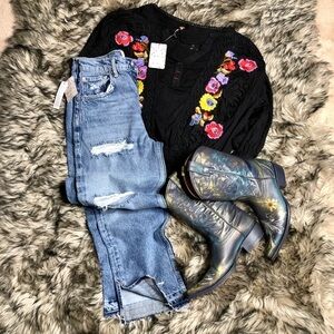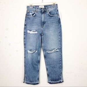 Free people very distressed ankle jeans with released hem, Yosemite blue 100% cotton