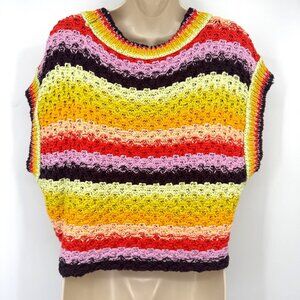 Free People Vest Women’s Size small Rainbow Stripe Summer Daze knit V neck vest