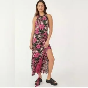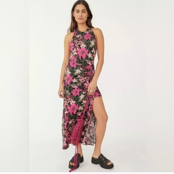 Free People Vibrant Pink and Black Backless Dress