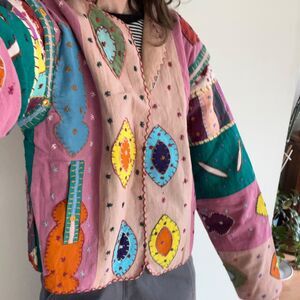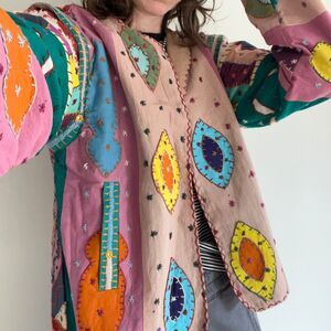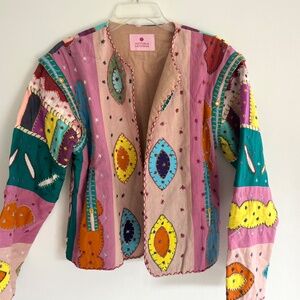Victoria Leivissa and Free People bohemian embroidered jacket in Evil Eye. Handmade. So much appliqué and embroidery detail. In great shape.