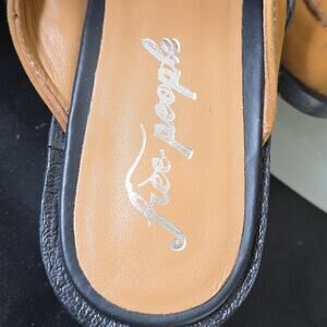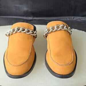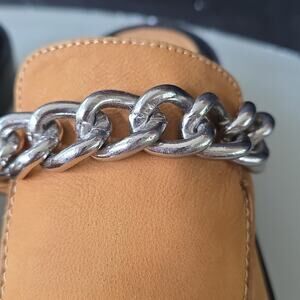 Free People Vida Camel Leather Exterior Mules Silver Chain Toe-Box Lady 40 Nwob