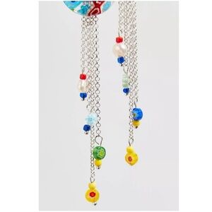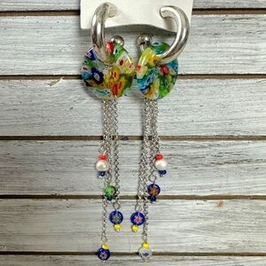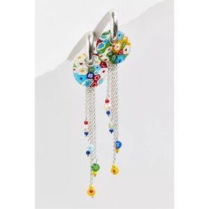 Free People Villa Hoop Earrings in Silver Multi NWT Glass Beads Dangle Bohemian
