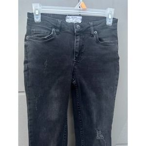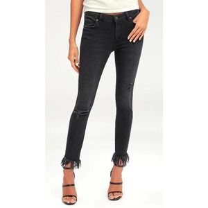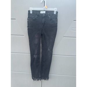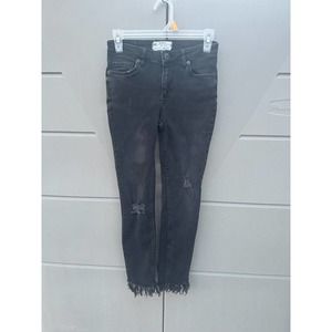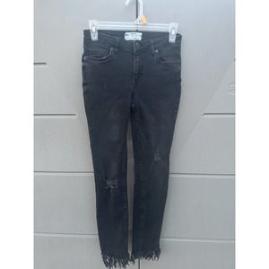 Free People Vintage Black Great Heights Frayed Distressed Skinny Jeans Size 24