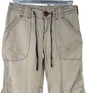 Free People Vintage Cargo Pants Size 4 Khaki Baggy Y2K Linen Blend Relaxed Fit