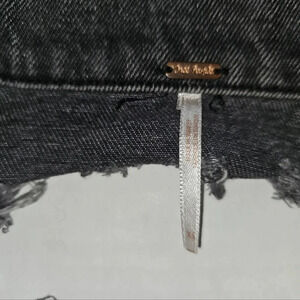 Free People Vintage Faded Black Distressed Embroidered Boho Oversized Denim Jacket XS