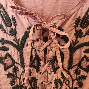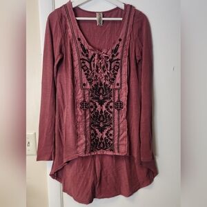 Free People Vintage Floral Embroidered Boho Tunic In Burgundy and BlacK Size S