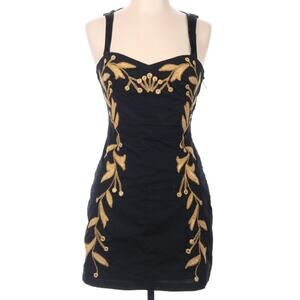 Free People Vintage Leaf Motif Black Embroidered Size 6 Mini Dress